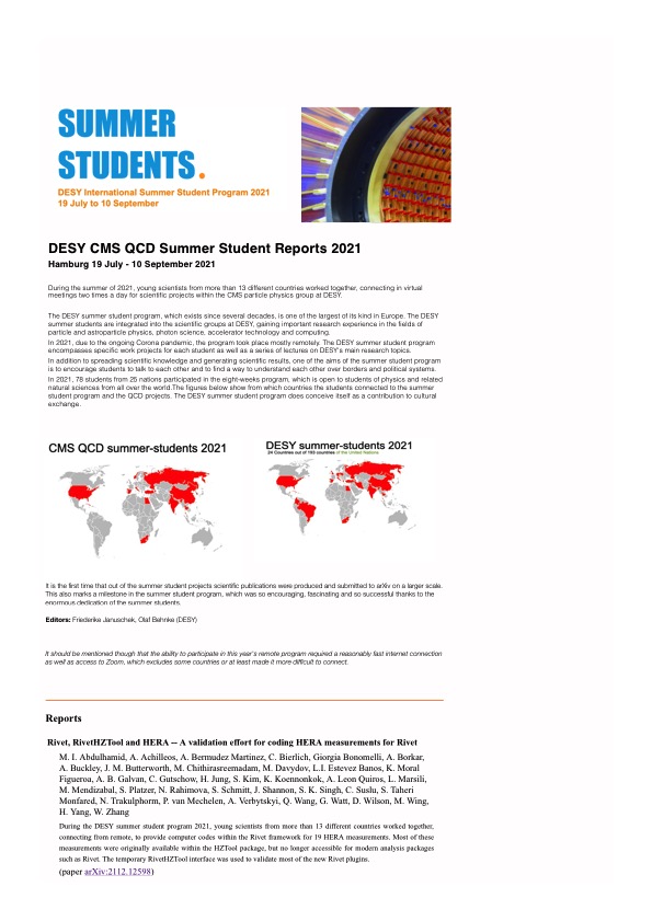 Out of these 3 projects, articles were publishe on arXiv, and we wanted to have them accesssible as a form of proceedings. On advise from the DESY library, we created a cover page (following the instructions from arXiv). The cover page was approved by the DESY FH directorate.